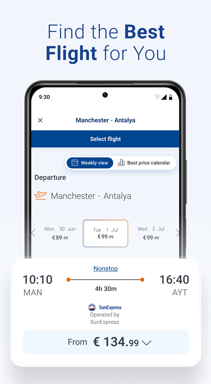 Everything for your trip is just a tap away. Book flights, check in, manage your trip, and get updates — all in one app. Whether you’re planning your next vacation or visiting loved ones, the SunExpress app helps you handle every detail effortlessly.